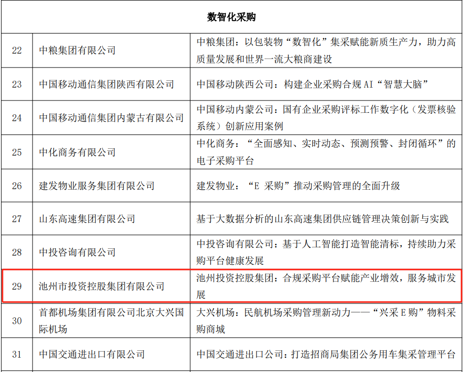 中國物流與采購聯(lián)合會公共采購分會自6月26日啟動面向國企采購領(lǐng)域的優(yōu)秀案例征集活動以來,受到廣大國企及服務(wù)國企采購的廣大企業(yè)的大力支持,并吸引眾多國有企業(yè)參選參評。池州市投資控股集團有限公司合規(guī)采購平臺,以申報案例的創(chuàng)新性、開拓性、啟發(fā)性、借鑒性、社會效益 等多維度優(yōu)勢獲得活動專家組青睞,并成功獲評優(yōu)秀案例。
