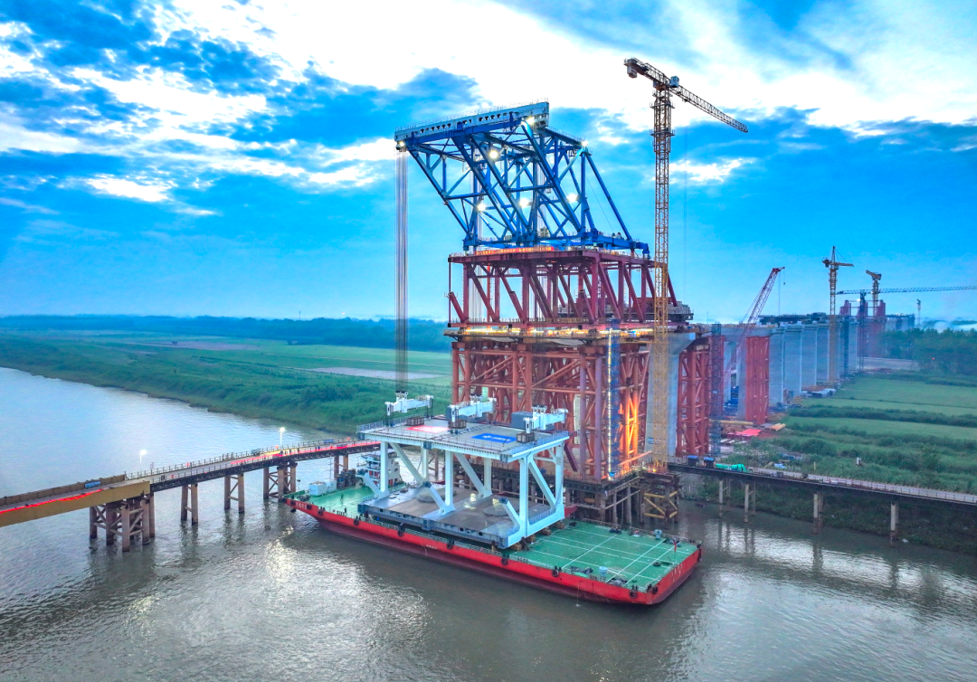 5月14日,隨著鋼桁梁的提升、落位、安裝,由集團建設的池州長江公鐵大橋成功吊裝全橋首節(jié)鋼桁梁,標志著該項目正式步入主橋上部結(jié)構鋼梁施工階段。