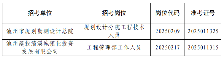 根據(jù)《池州市投資控股集團(tuán)2025年公開招聘工作人員公告》要求,由于入圍體檢的考生中有部分人員自動放棄或不合格產(chǎn)生了人員空缺?,F(xiàn)按《公告》要求,視崗位情況進(jìn)行遞補?,F(xiàn)將入圍遞補體檢情況公告如下: