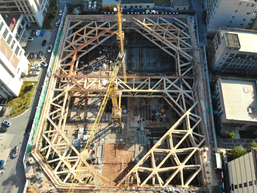 項(xiàng)目地處醫(yī)院內(nèi)部,施工環(huán)境復(fù)雜——場地狹小、周邊建筑密集、地下管線錯(cuò)綜,且基坑深、地下水豐富,對支護(hù)安全與防滲漏要求極高。面對上述挑戰(zhàn),項(xiàng)目充分發(fā)揮臨時(shí)黨支部引領(lǐng)作用,聚焦EPC聯(lián)合體優(yōu)勢,聯(lián)合設(shè)計(jì)、監(jiān)測單位研讀地勘資料及規(guī)范,識別風(fēng)險(xiǎn)源并擬定專項(xiàng)方案;同時(shí)邀請專家及建設(shè)、監(jiān)理單位,圍繞支護(hù)設(shè)計(jì)、深基坑施工等關(guān)鍵環(huán)節(jié)多輪論證,攻克技術(shù)難題。