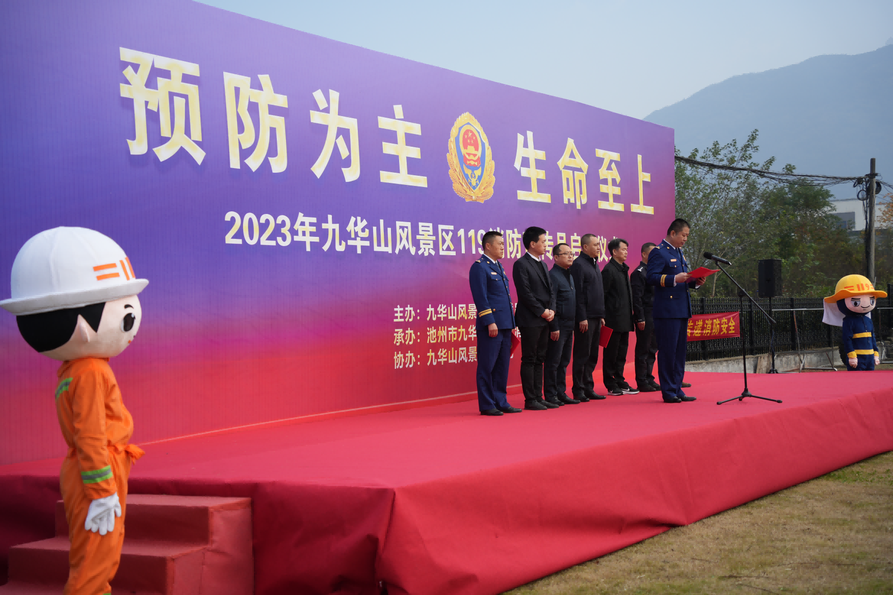 為進(jìn)一步加強(qiáng)消防安全宣傳教育,預(yù)防和遏制重大火災(zāi)事故的發(fā)生。11月13日,大愿文化園分公司(以下簡(jiǎn)稱(chēng)“文化園分公司”)組織員工積極參與“預(yù)防為主 生命至上”2023年九華山風(fēng)景區(qū)119消防宣傳月啟動(dòng)儀式。