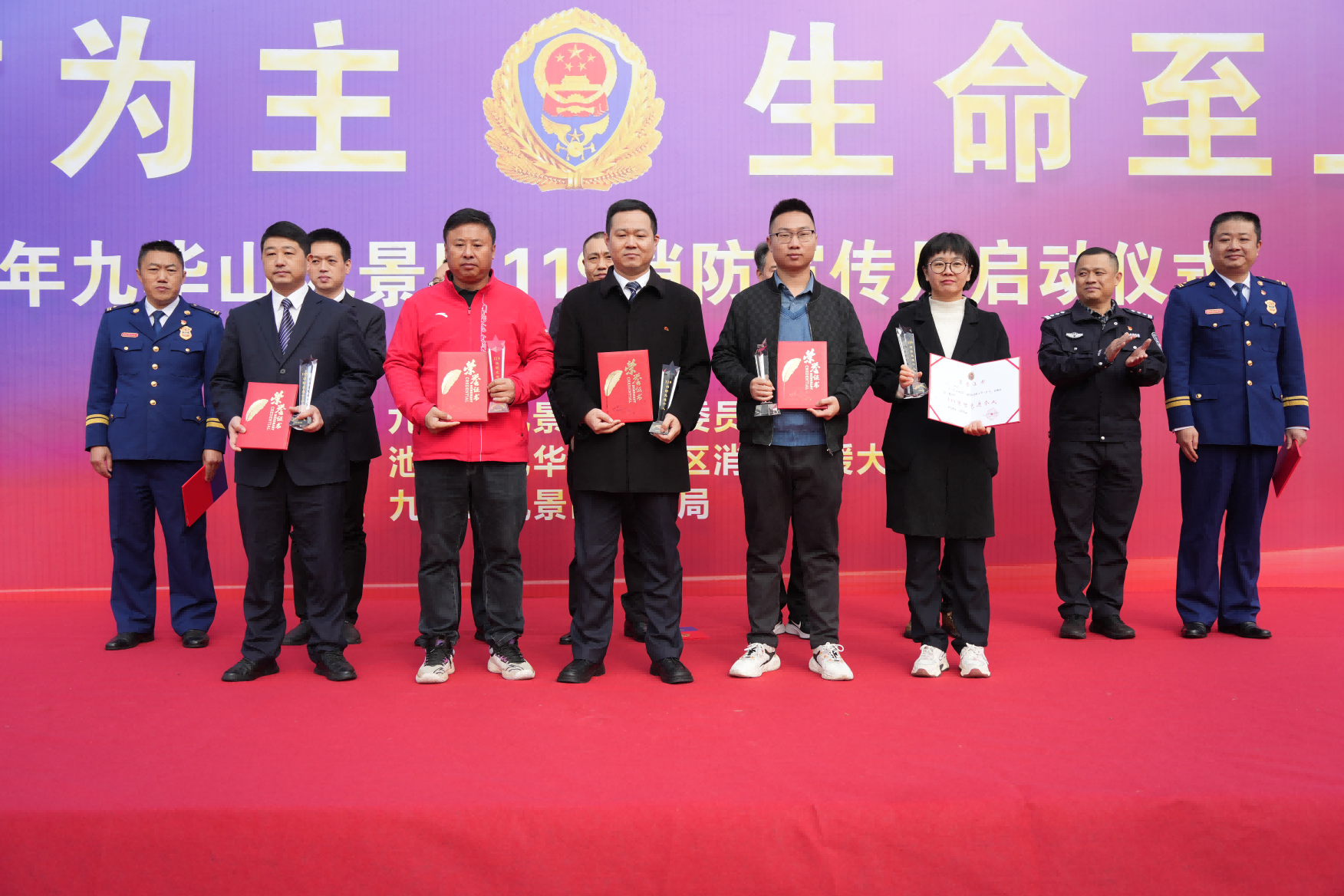 九華山風(fēng)景區(qū)管委會(huì)副主任李剛在啟動(dòng)儀式上作熱情洋溢的致辭,并宣布2023年“119”消防宣傳月活動(dòng)正式啟動(dòng)。會(huì)上,宣布了2023年全山119消防先進(jìn)集體、先進(jìn)個(gè)人名單,與會(huì)領(lǐng)導(dǎo)為獲獎(jiǎng)集體和個(gè)人頒獎(jiǎng)。文化園分公司綜合部副經(jīng)理、安委辦主任鄧慧敏榮獲全山119消防先進(jìn)個(gè)人稱(chēng)號(hào)。