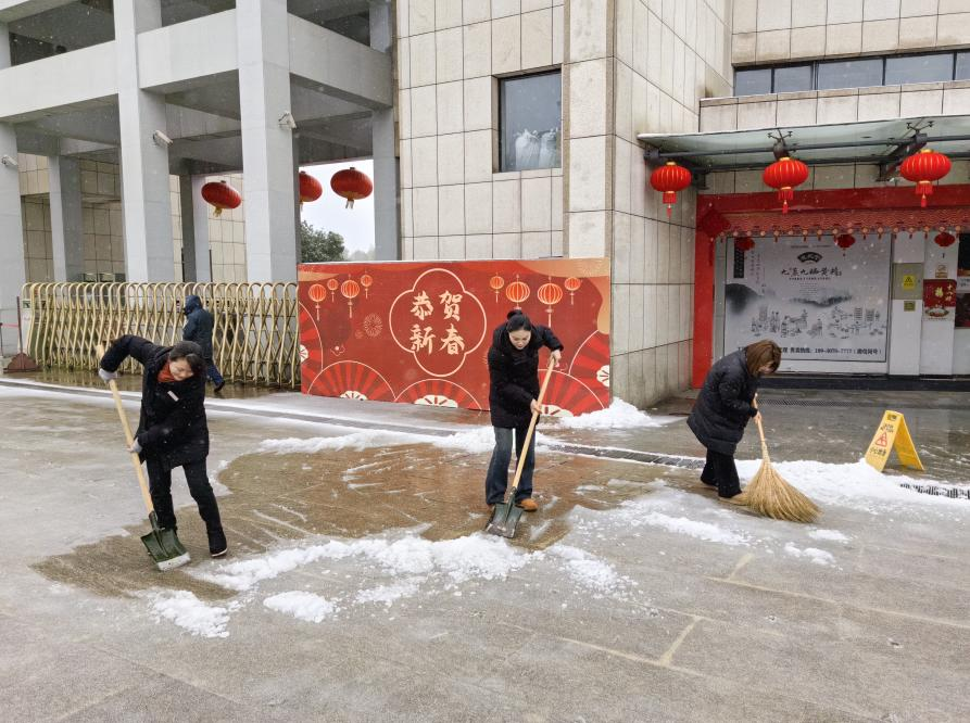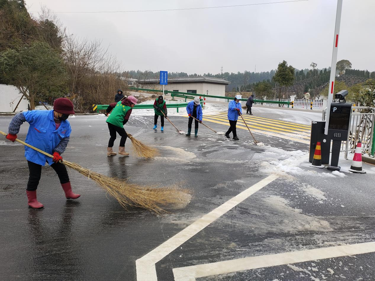 公司組織全體員工迅速投入掃雪除冰行動,安排專人在001縣道小沖口下坡段多次拋灑融雪劑,重點對坡道路面加強清雪除冰工作。全體干部職工,按照下雪應急預案提前劃分好區(qū)域,對各區(qū)域道路的積雪進行清掃。經(jīng)過奮力清雪除冰,通往園區(qū)和館內(nèi)道路積雪積冰情況得到有效緩解。