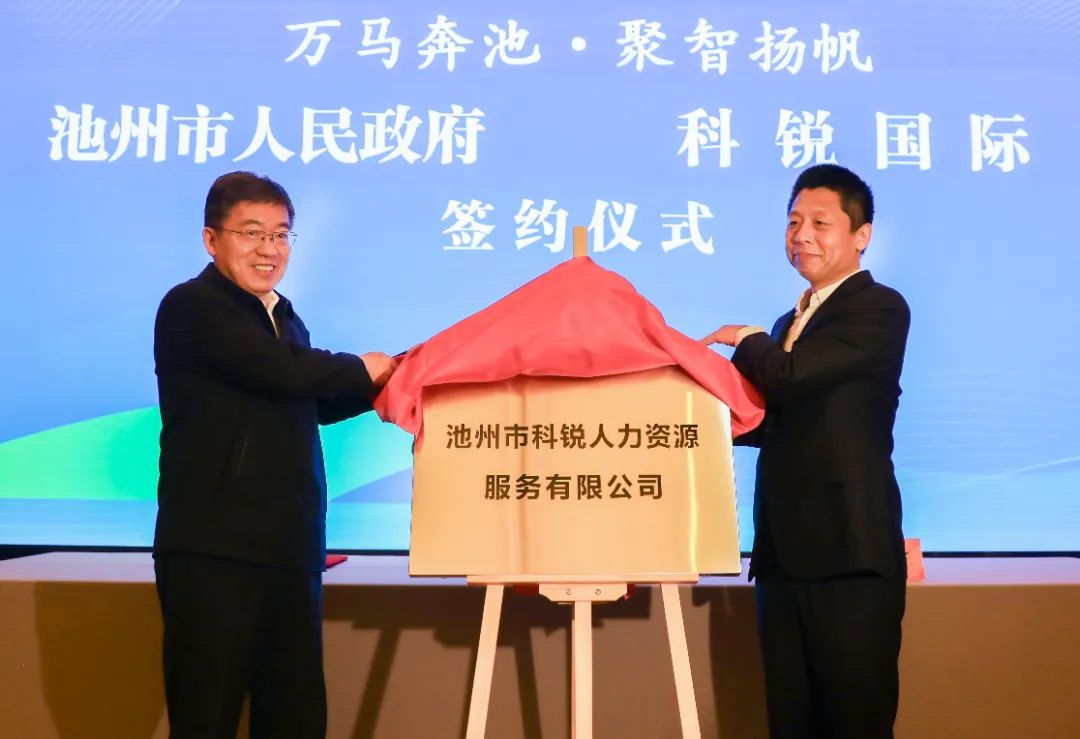 4月2日上午,池州市政府與科銳國際合作交流座談會(huì)暨合作項(xiàng)目簽約儀式舉行。市委書記朱浩東、科銳國際董事長高勇出席并講話,共同為池州市科銳人力資源服務(wù)有限公司揭牌。市領(lǐng)導(dǎo)史孺牛、廖強(qiáng)、李軍等參加。